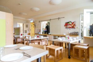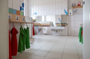 In unserer Küche und dem angrenzenden Kinderrestaurant erleben Kinder täglich, wie frische, ausgewogene Mahlzeiten zubereitet werden. Obst und Gemüse aus unserem Kita-Garten wird hier das ganze Jahr über von Kindern und Mitarbeitern gesammelt und verarbeitet.